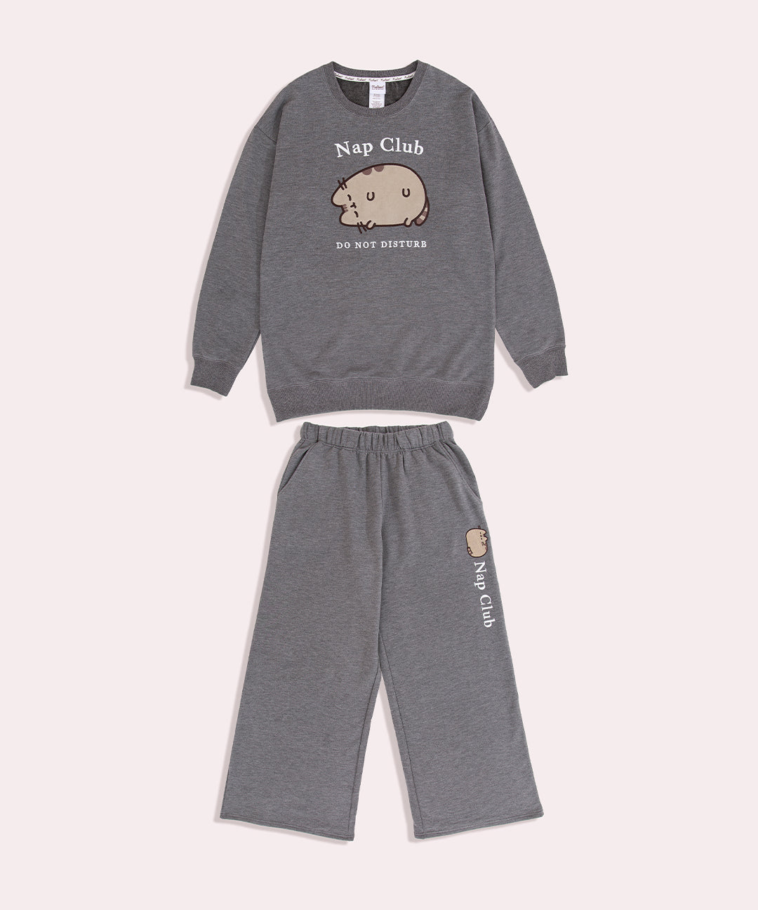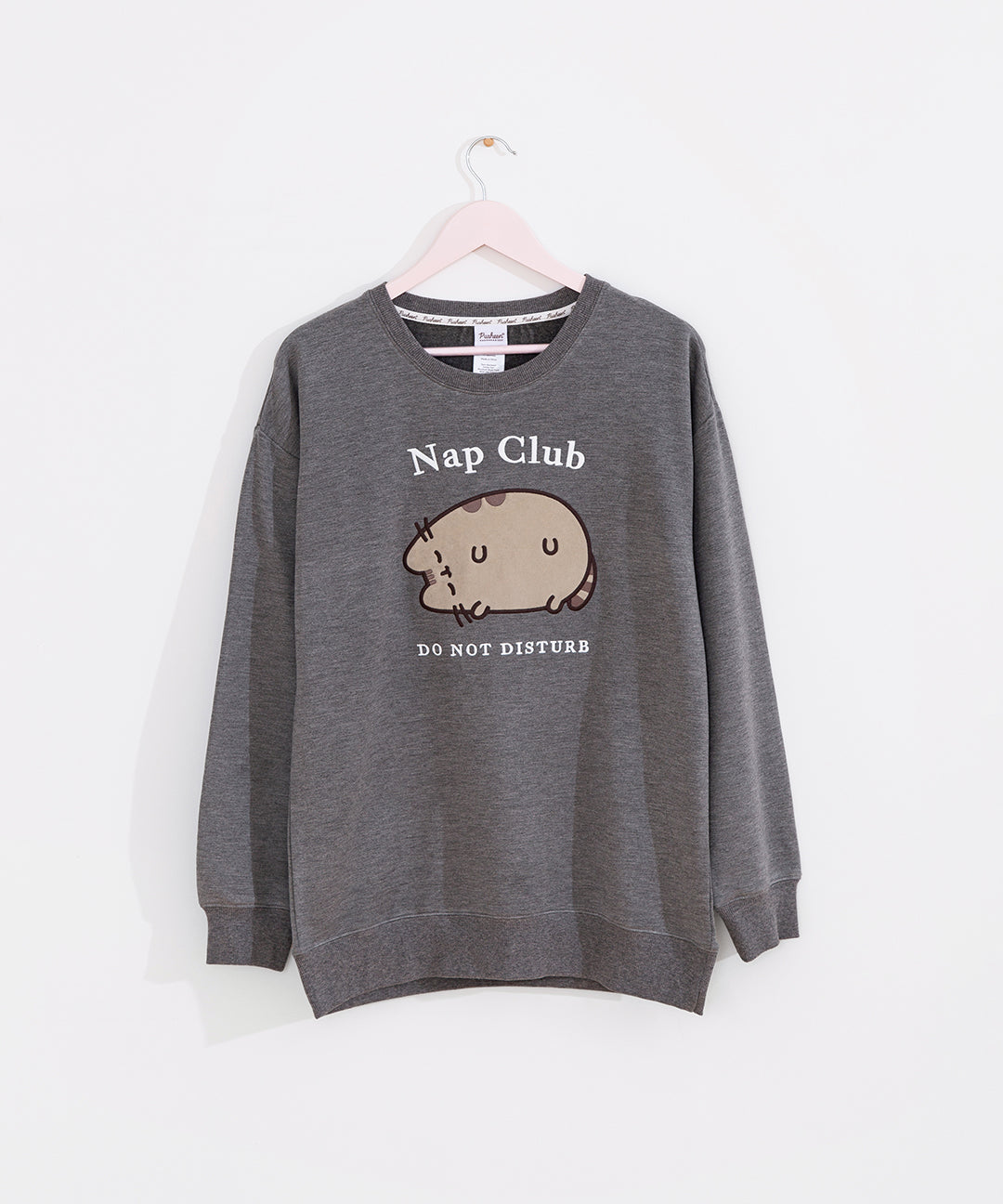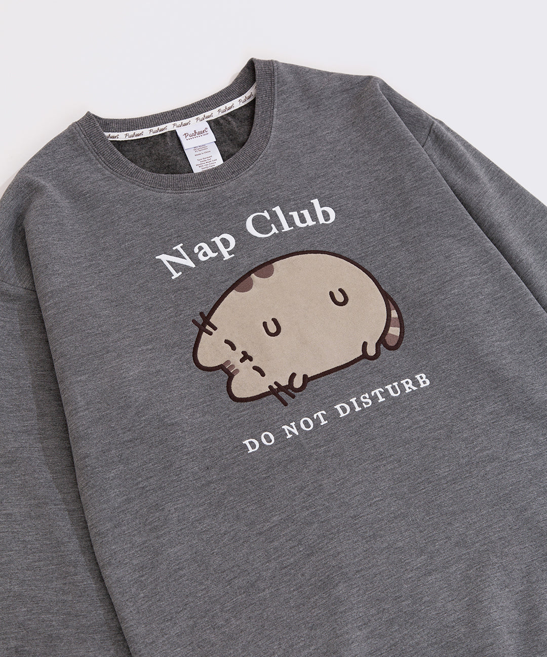 - Pullover loungewear top features embroidered phrases "Nap Club" and "Do Not Disturb" with Pusheen incorporating soft flocking and embroidered detailing on the chest.